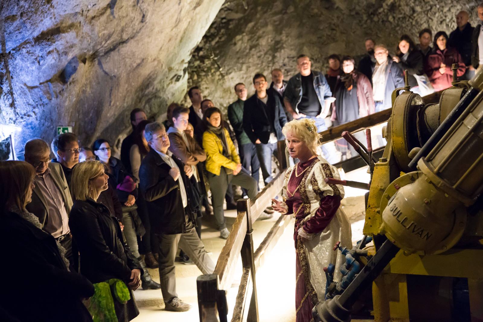 Autre défi, les étapes pour les convives. En effet, après un accueil de ma part à l’entrée, l’idée était de continuer la descente avec les trains certes, mais stopper ceux-ci à un moment où le XVIème s’offrait aux convives, accueillis par un mineur du XVIème siècle.