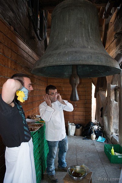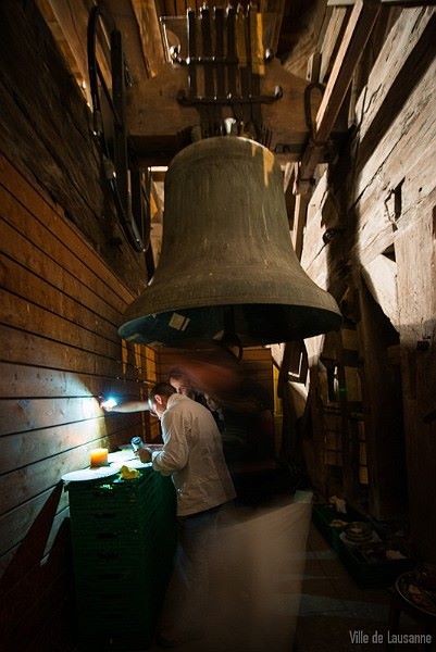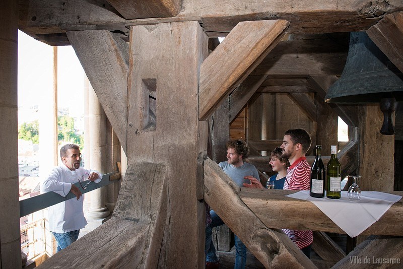 3ème table éphémère : un repas médiéval au sommet du clocher (Beffroi) de la cathédrale, sous la Marie-Madeleine. Résultat ? Totalement lunaire avec une After dans la loge du Guet de la cathédrale.