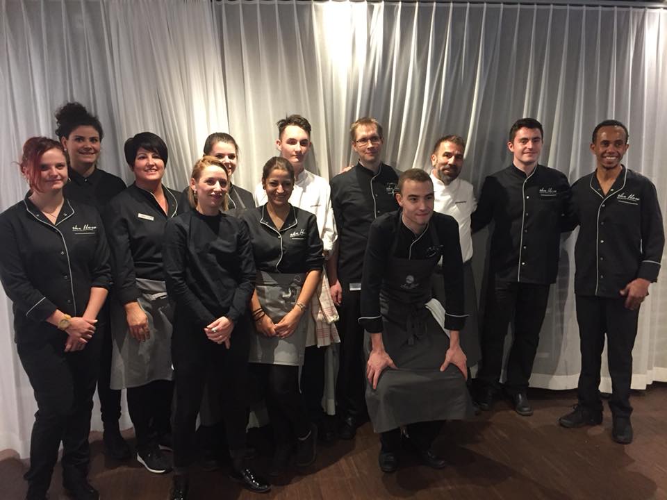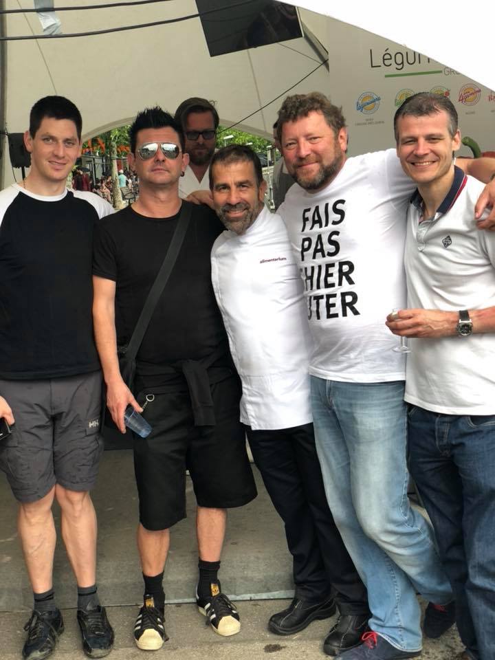 1ère table éphémère dans les studios de Couleur3 où mon comparse Duja animait la matinale. Le principe était simple : faire le buzz toute la matinée en faisant bien saliver les auditeurs et les informer qu’à 11h02, une question serait posée et que les 4 premiers viendraient manger avec nous ! Résultat ? Un superbe moment de convivialité avec des hôtes fantastiques et… Le standard de Couleur3 qui a disjoncté !